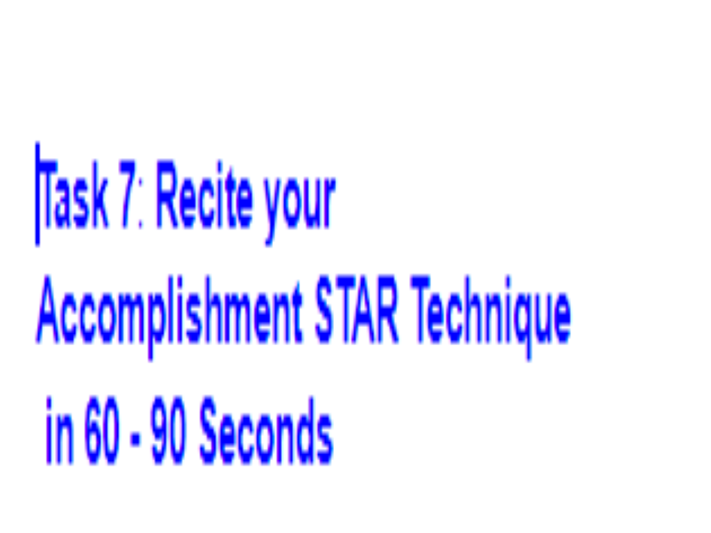Recite your Accomplishment STAR Technique in 60 - 90 Seconds (2 min)