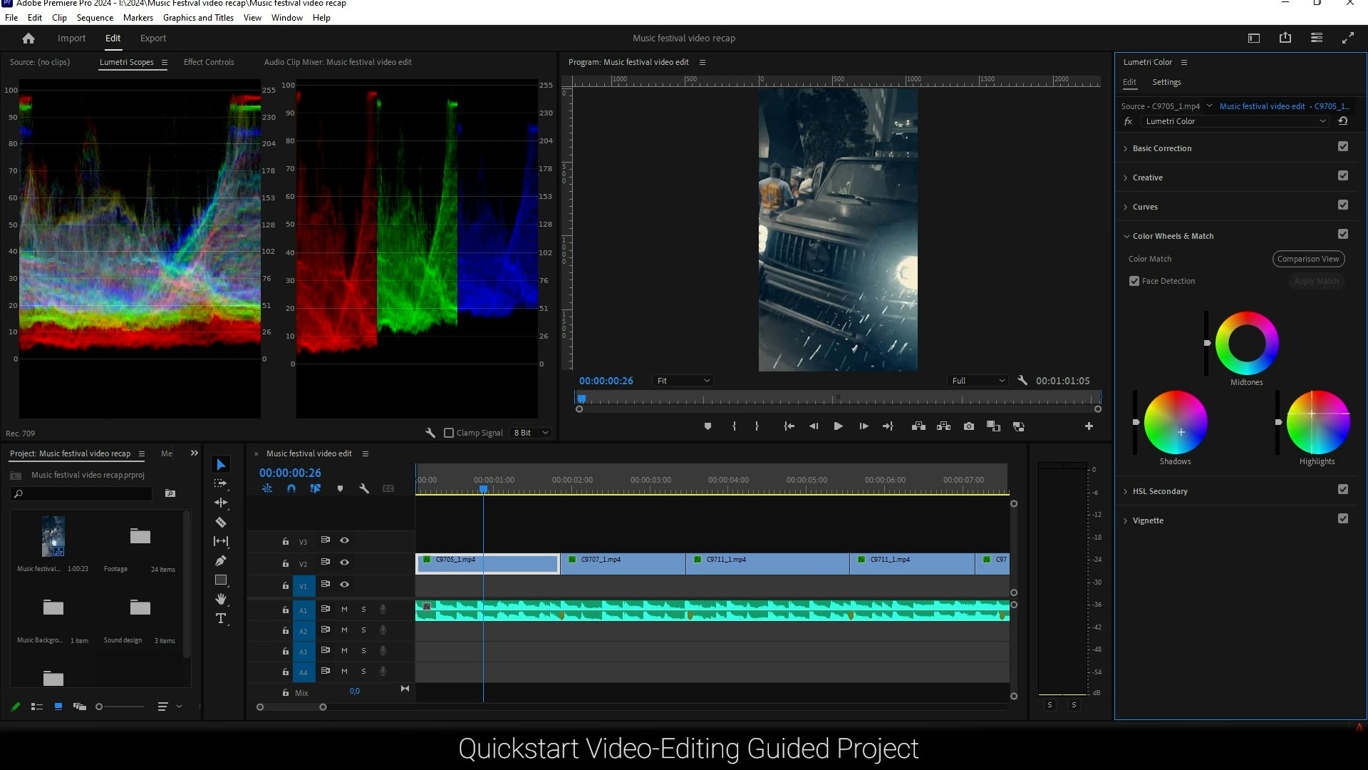 • Learn to edit a narrative video by applying techniques that support storytelling, clip selection, sequencing, and transitions.