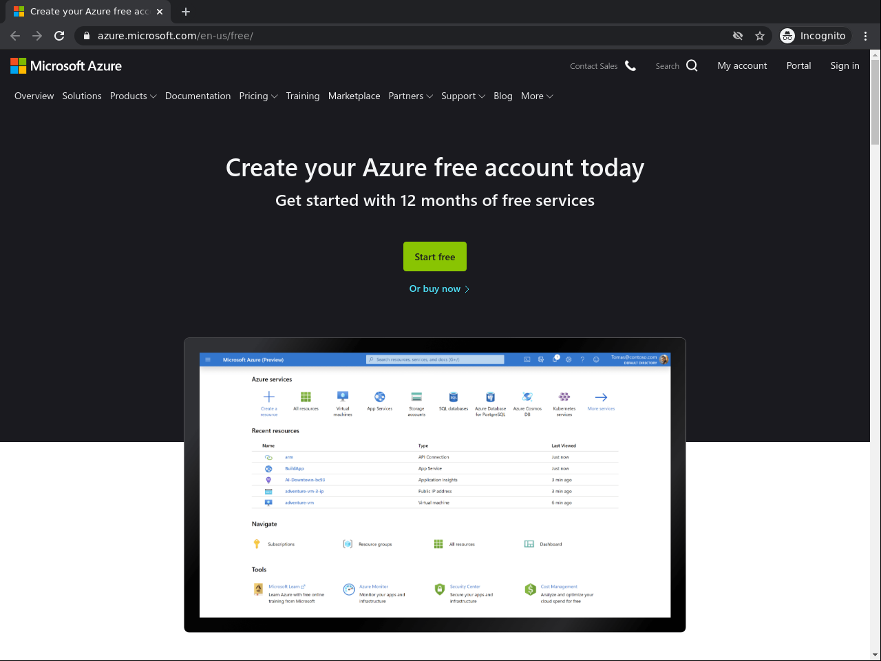 1. Create a free trial account in Microsoft Azure and log into Azure using your new subscription.