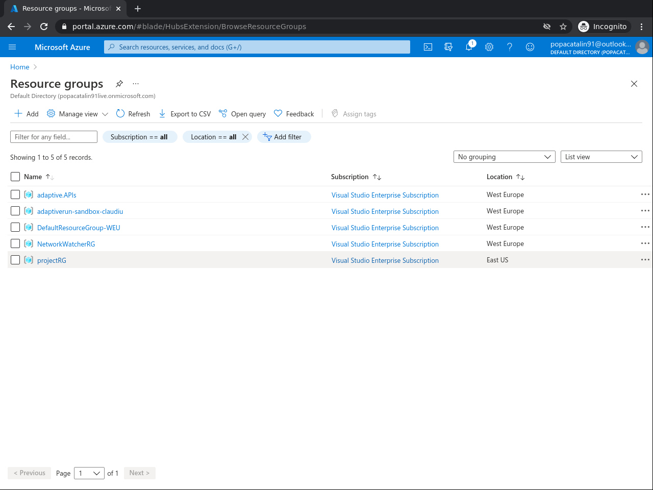 2. Create a Resource Group in preparation for creating a new Computer Vision resource.