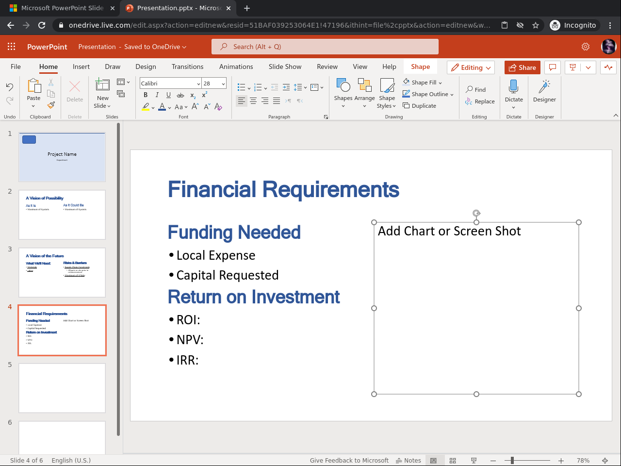 This project will help you create a business case presentation template in PowerPoint. This template will help learners share information necessary to your business case, make a compelling impression on investors, and present that information to maximize funding potential.