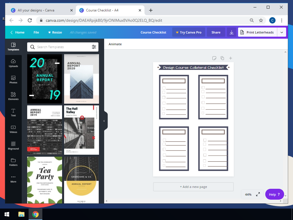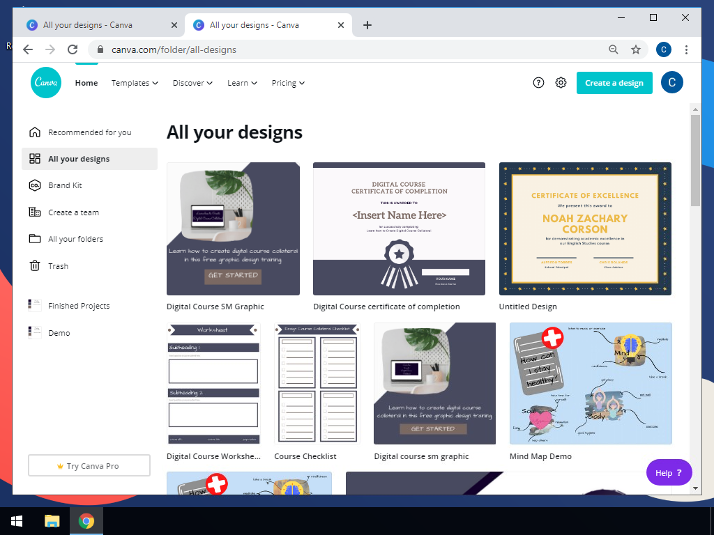 By the end of this project, you will create digital course collateral for use in your digital courses. You will be able to incorporate a color scheme, images, and other design elements for aesthetically pleasing and value-added course collateral. This course will include intermediate to advanced level skills using the free version of Canva. You will create a course promo graphic, a fillable PDF, a worksheet, and a course certificate for your digital course collateral in this project.