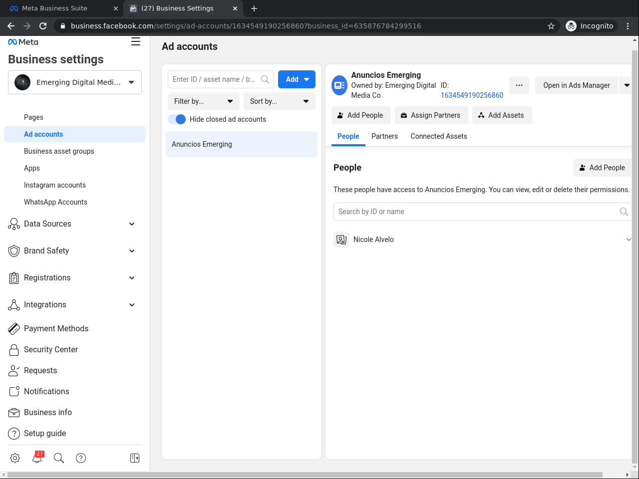 Agrega la cuenta de ads bajo la cuenta de Meta Business Suite