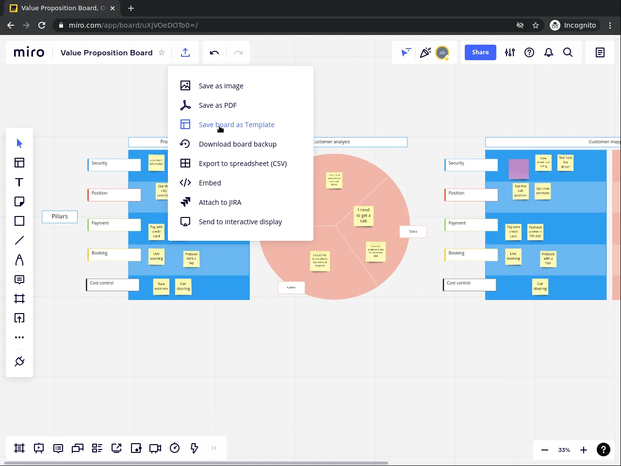 • Using shapes, colors, sticky notes, frames and other Miro elements