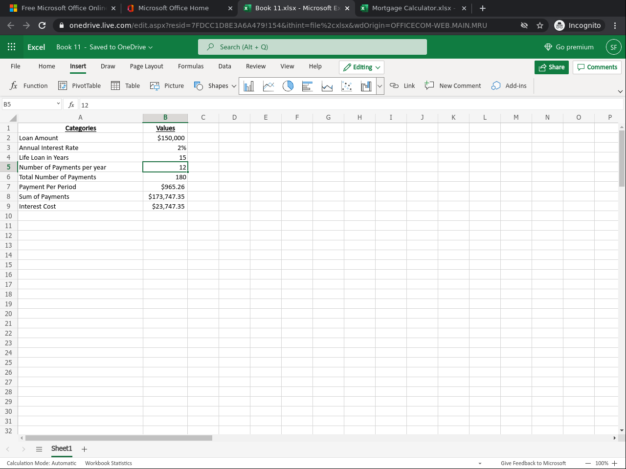 Create a mortgage payment calculator in Excel from a blank spreadsheet