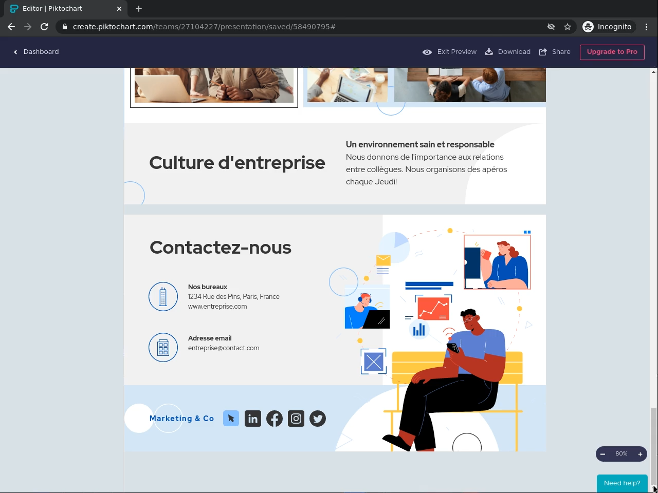 • Vous serez capable de créer une présentation professionnelle d'entreprise avec Piktochart