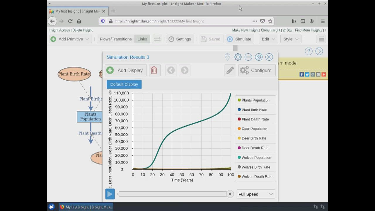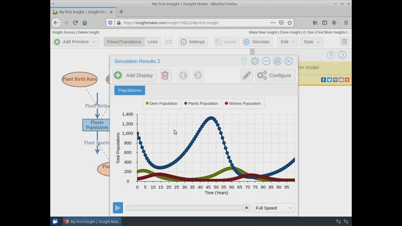 In this 1-hour long project-based course, you will create a model that simulates the interrelated dynamics of three different species populations within an environment: plants, deer, and wolves