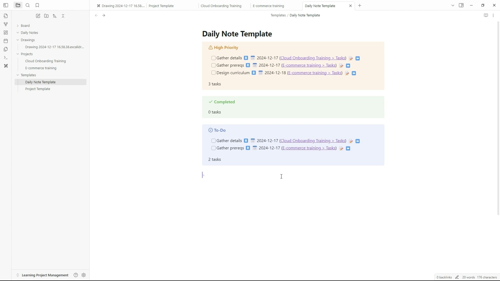 In this 1.5 hours, project-based course, you will learn how to effectively use Obsidian for managing collaborative training projects enhancing its capabilities with plugins. The course will guide you through setting up an efficient system addressing the challenges of creating shared visuals, managing and tracking tasks, ensuring accountability.