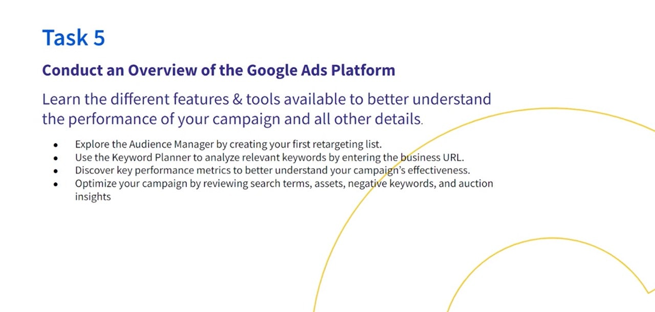 Want to learn how to promote a business or increase traffic to your website? This guided project was designed to help marketing enthusiasts who are ready to start their Google Ads journey understand how to run successful campaigns.