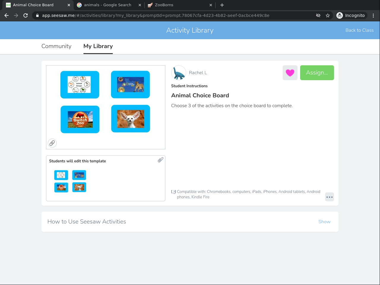 Use Seesaw Activities