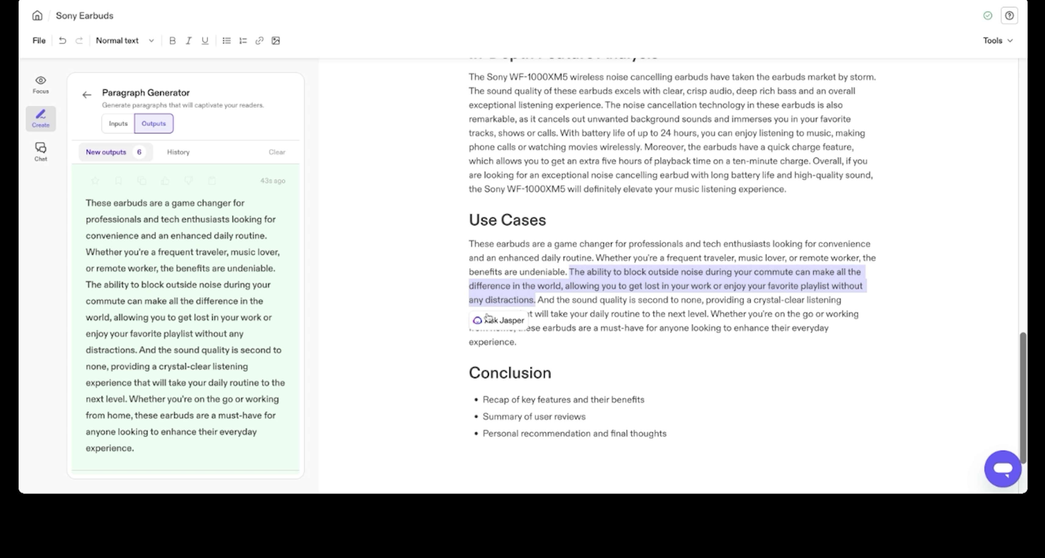 Leverage Jasper AI's paragraph generator and content improver features to refine and enhance