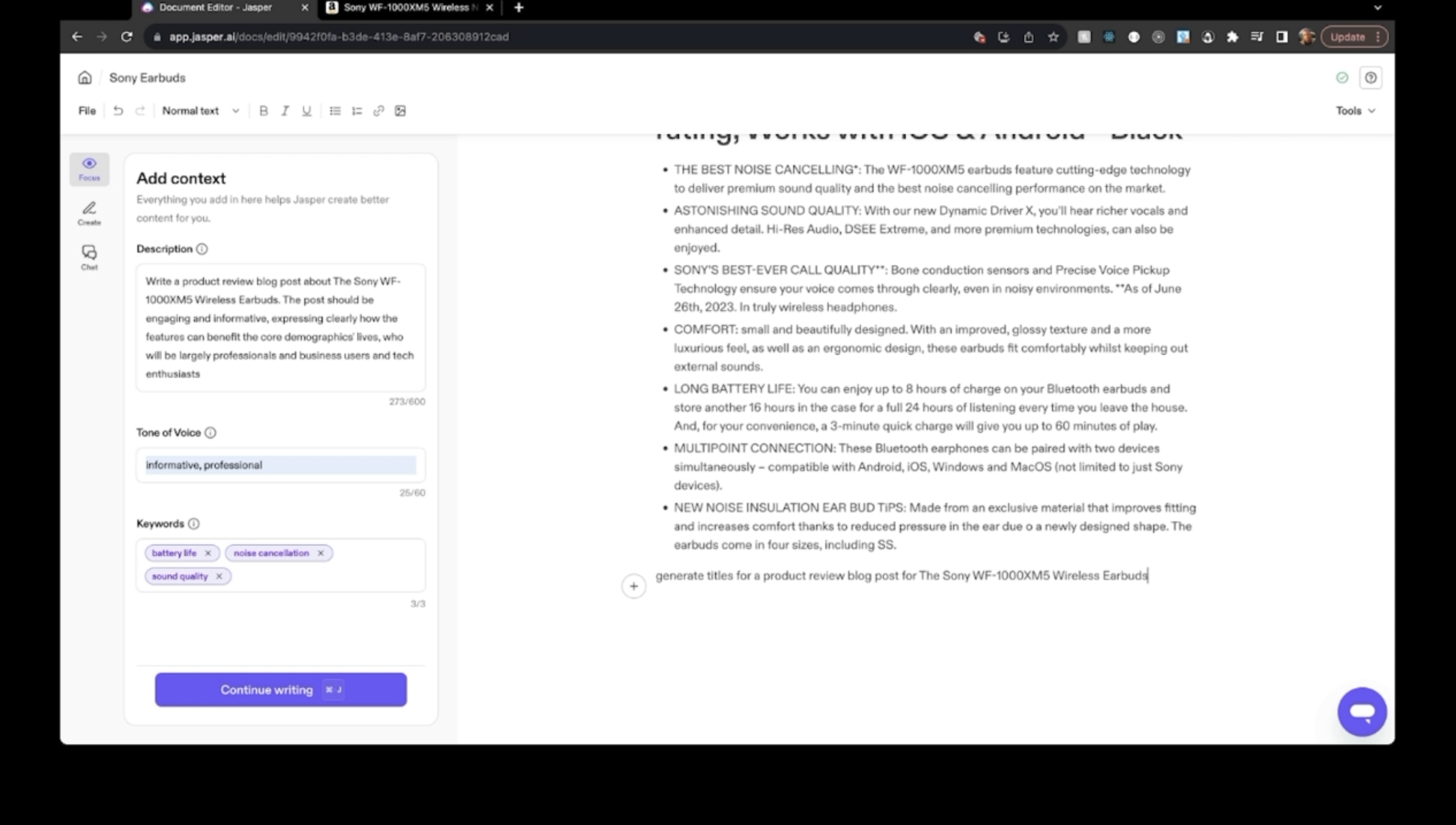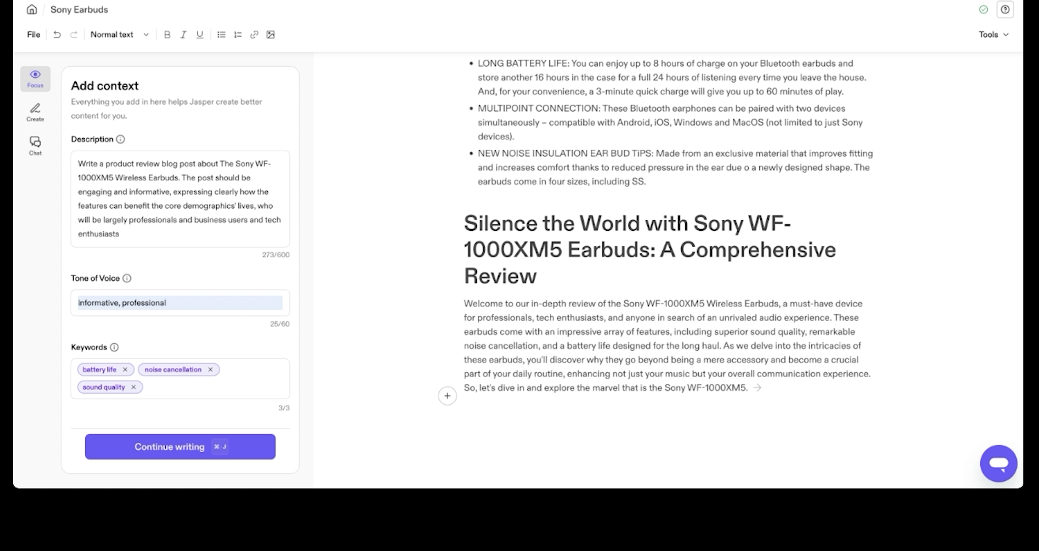 Enhance your digital content creation skills with this focused two-hour project-based course, where you'll use Jasper AI to create a professional-grade product review blog post for a pair of wireless noise cancelling earbuds.