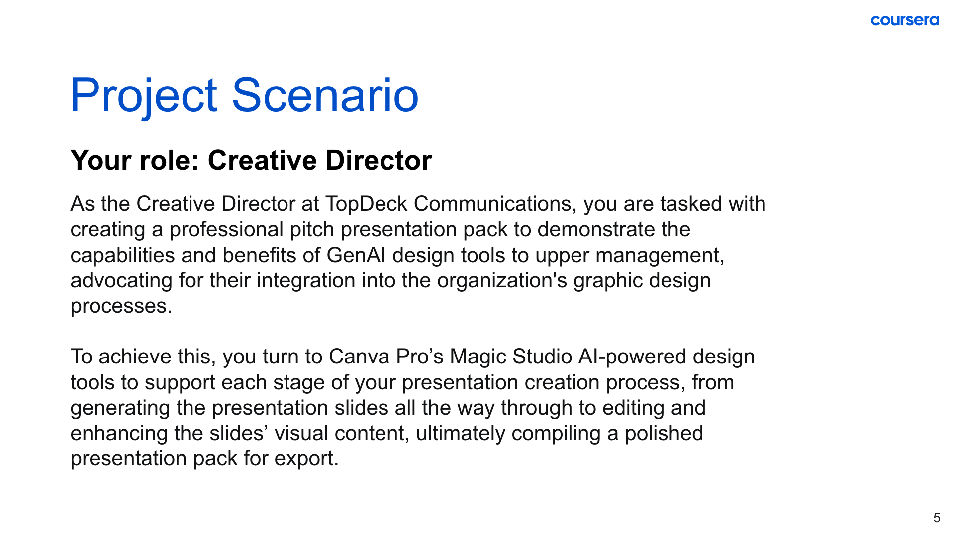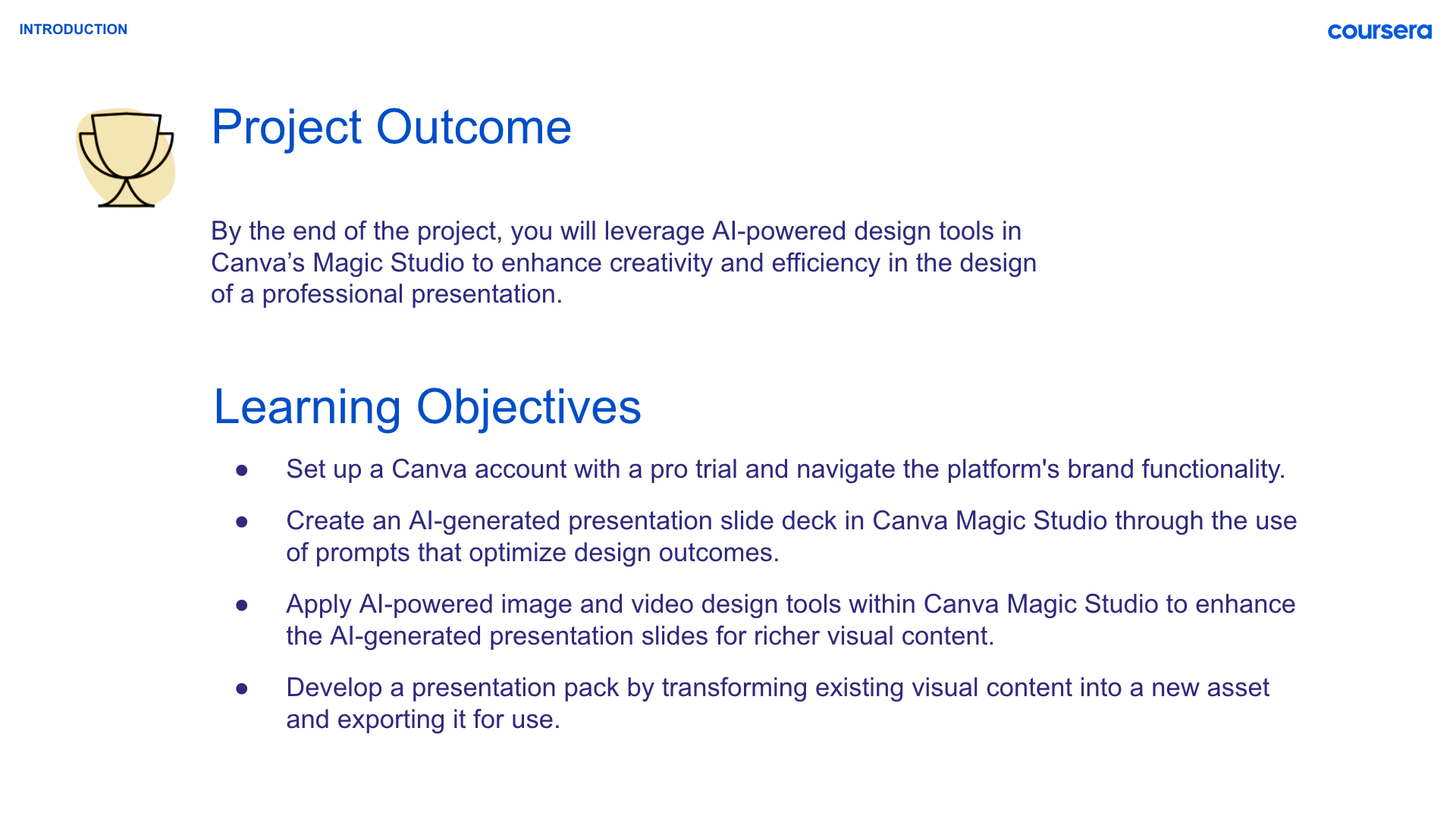 This Guided Project, led by Jana Porter, and expert in effective visual communication, was created to help professionals efficiently craft persuasive, creative presentations that captivate audiences and drive results with the use of AI-powered design Tools in Canva’s Magic Studio.
