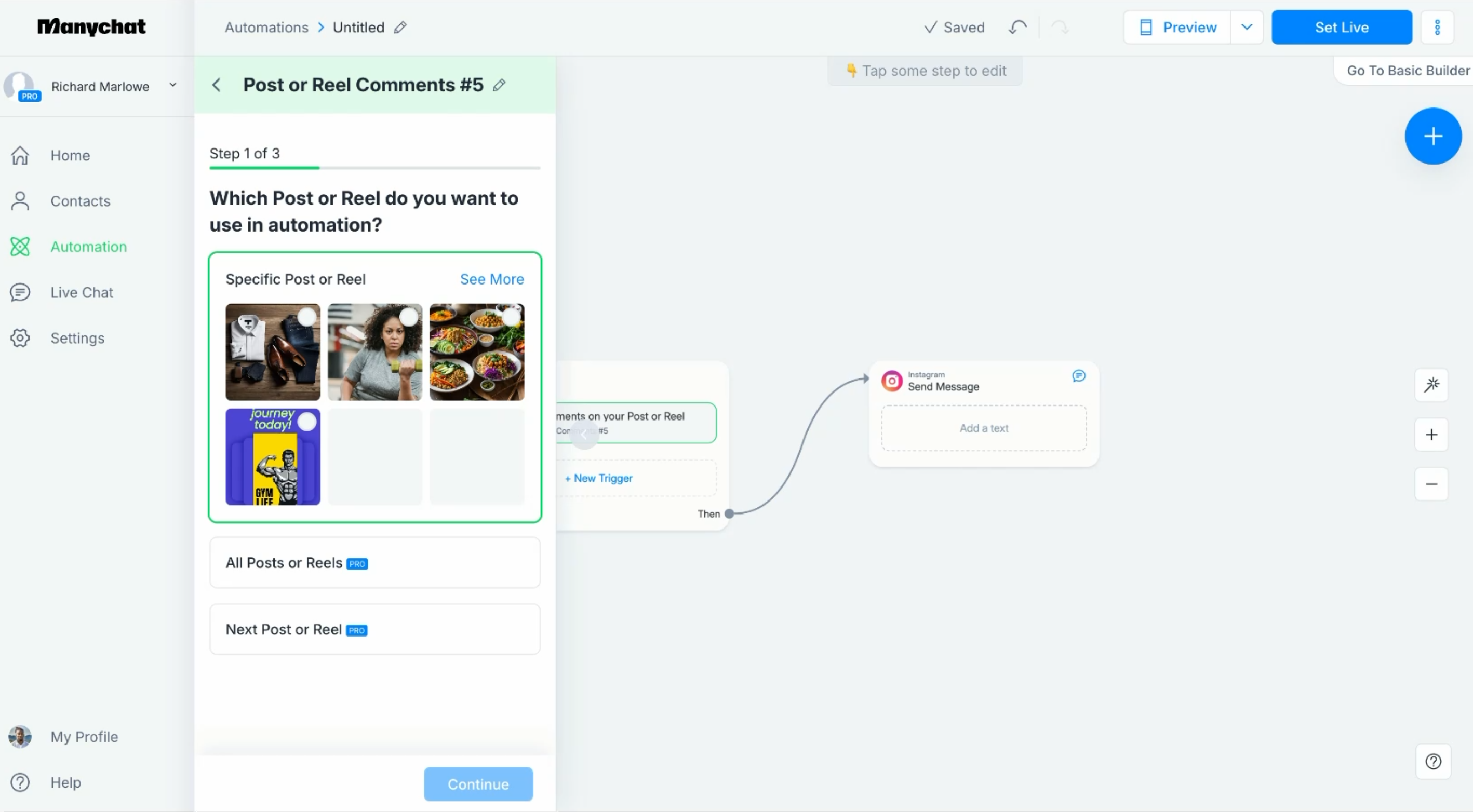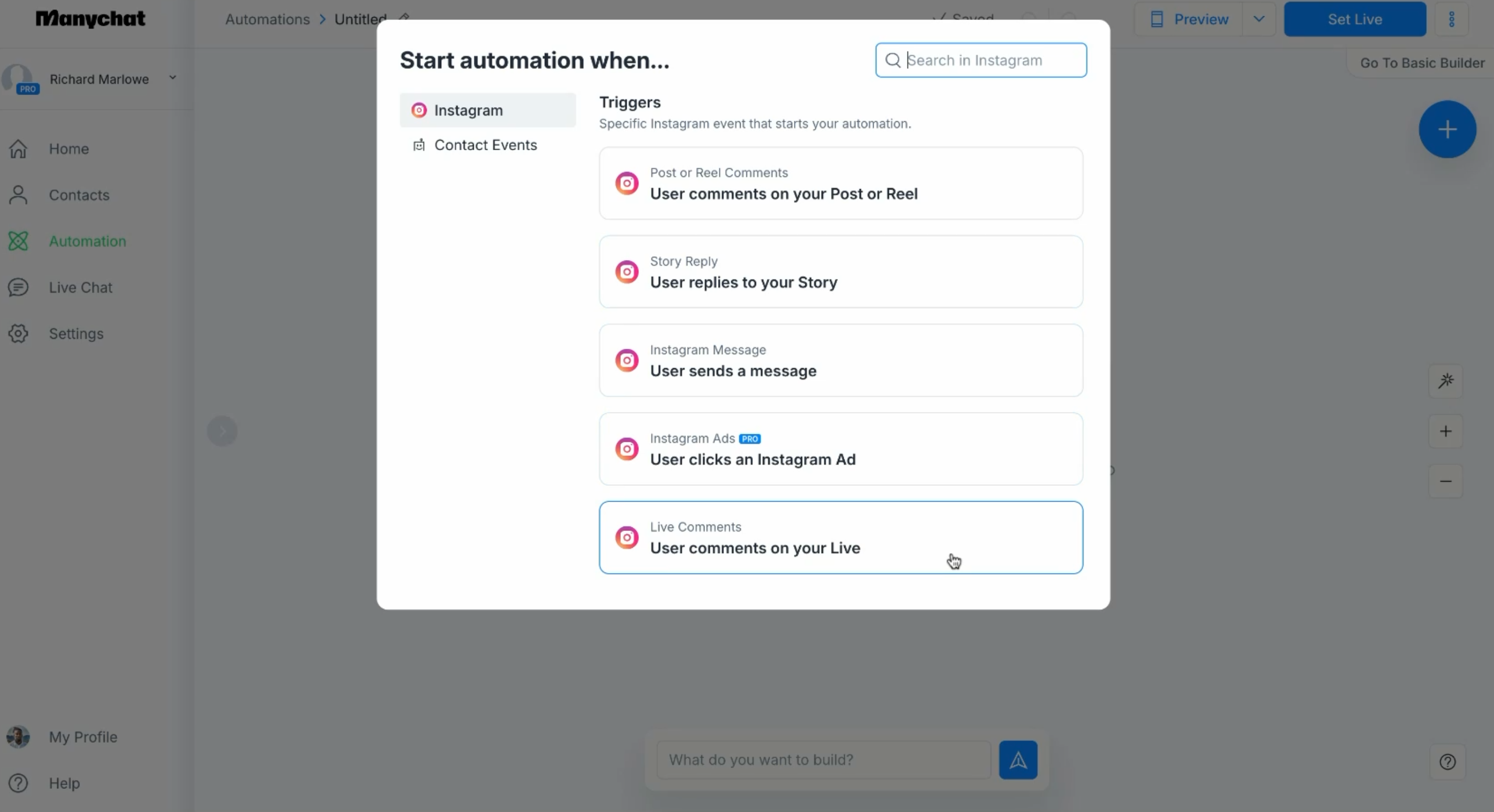 Define triggers that look for new Instagram post engagement to begin automated interactions.