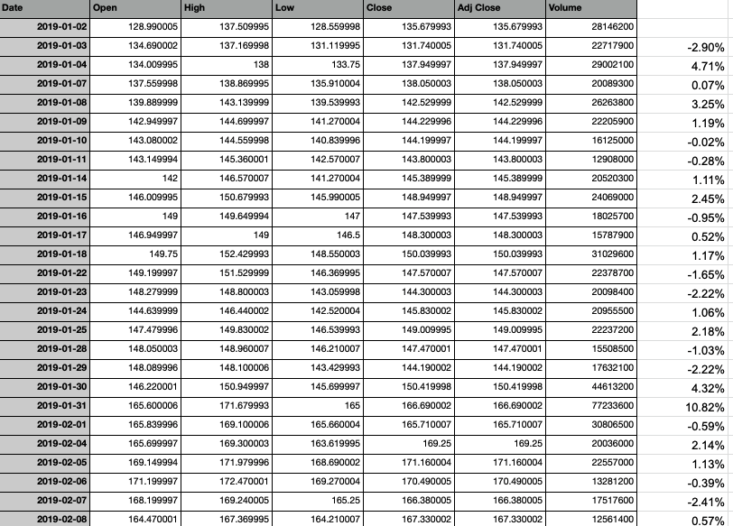 Please provide access to the spreadsheet of returns.